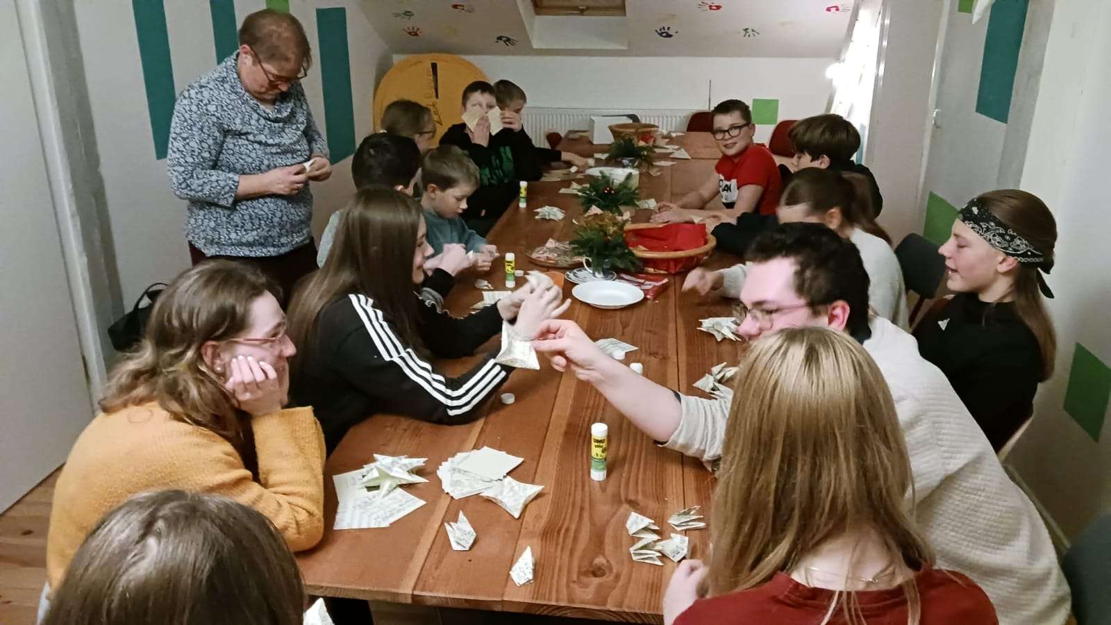 Auch das Jahr 2025 endete für unsere Konfis wie für die Junge Gemeinde traditionell mit dem Cosy Evening und einer Runde Schrottwichteln. Anfang Dezember traf sich der Konfikurs gemeinsam mit der Jungen Gemeinde zum Knabbern von Weihnachtskeksen, Apfelpunsch trinken und dem Basteln von Sternen. Wir hörten die Geschichte von einem ganz besonderen Stern, der in der dunklen Jahreszeit Hoffnung und Licht bringt. Mit so viel Sternenzauber konnten wir gut das Jahr beenden und freuen uns nun auf die kommenden Konfisamstag und anstehenden Wochenenden in Sassen. Die Junge Gemeinde feierte zwei Wochen später den Jahresabschluss. Es wurden hübsch verpackte Geschenke mitgebracht und im Kreis herum gereicht. Noch schnell die richtige Zahl würfeln, weil das auserkorene Geschenk noch beim Nachbarn liegt. Die Freude war groß über Schullektüren, Wörterbücher oder Duftkerzen. Naja, der Spaß stand auf jeden Fall im Vordergrund.